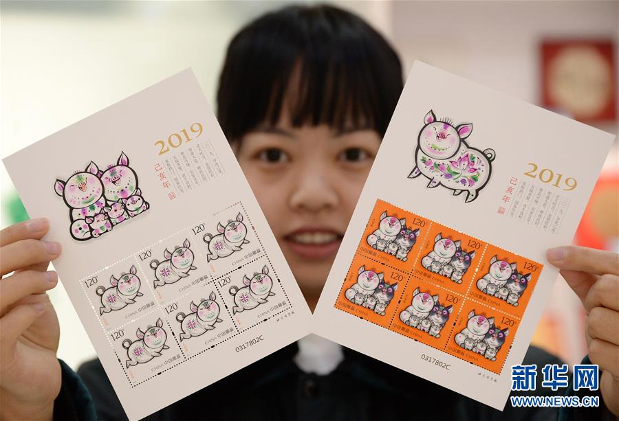 当日,中国邮政发行《己亥年》特种邮票1套2枚,图案分别是“肥猪旺福”和“五福齐聚”,全套邮票面值2.40元。