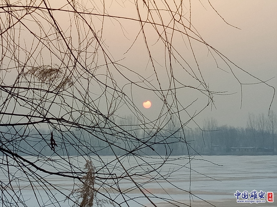 2019年1月6日,雄安新区天宇上演“日偏食”罕见天象。赵艳青摄于白洋淀