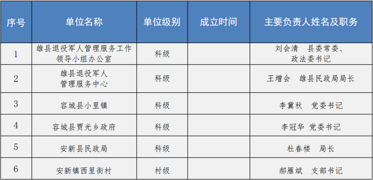 “河北雄安新区退役军人管理服务工作先进单位”推荐单位基本情况汇总表