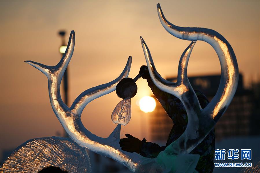 哈尔滨国际冰雕比赛:初露芳容
