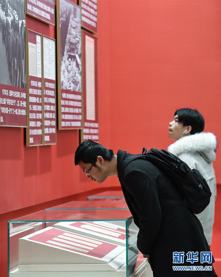 1月8日,观众在参观展览。截至1月8日,在北京中国国家博物馆举办的“伟大的变革——庆祝改革开放40周年大型展览”累计迎来现场参观人数近255万人次。新华社记者 李贺 摄