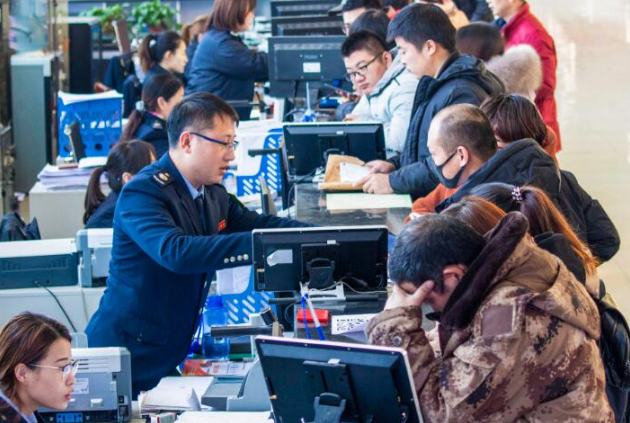 在位于武邑县政务服务中心的武邑县税务局办税大厅内,工作人员在为客户办理纳税业务。(资料片)新华社记者李晓果摄