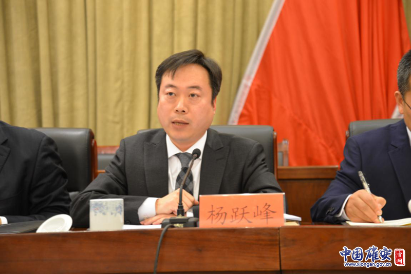 雄县县委副书记、政府县长杨跃峰就全县经济工作进行讲话。朱峙委 摄