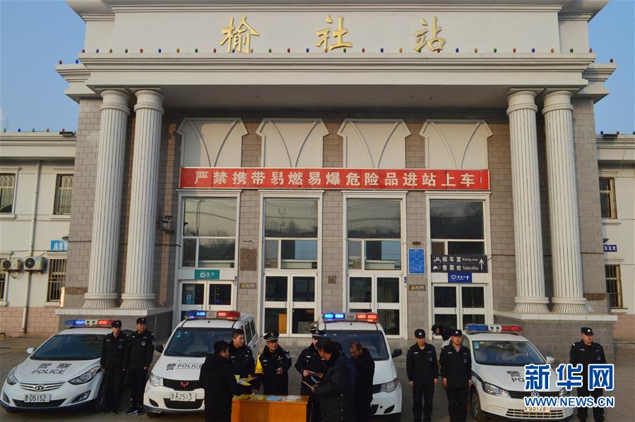 1月10日,太原铁路警方联合地方公安机关在榆社站开展110宣传日活动。当日是全国第33个110宣传日,多地警方举办宣传活动。新华社发(王曦 摄)