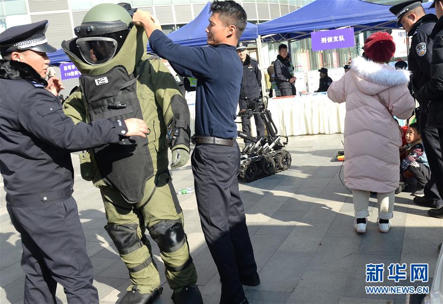 1月10日,昆明市民试穿防爆服。当日是全国第33个110宣传日,多地警方举办宣传活动。新华社记者 秦晴 摄