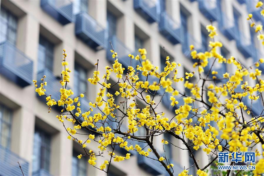 这是1月14日拍摄的江苏南京河海大学校园内的蜡梅。
