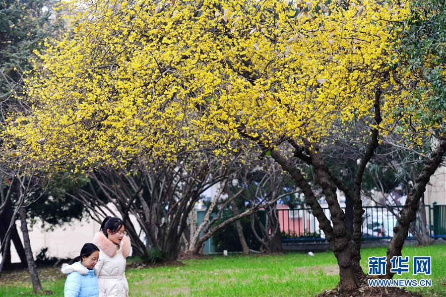 这是1月14日拍摄的江苏南京河海大学校园内的蜡梅。