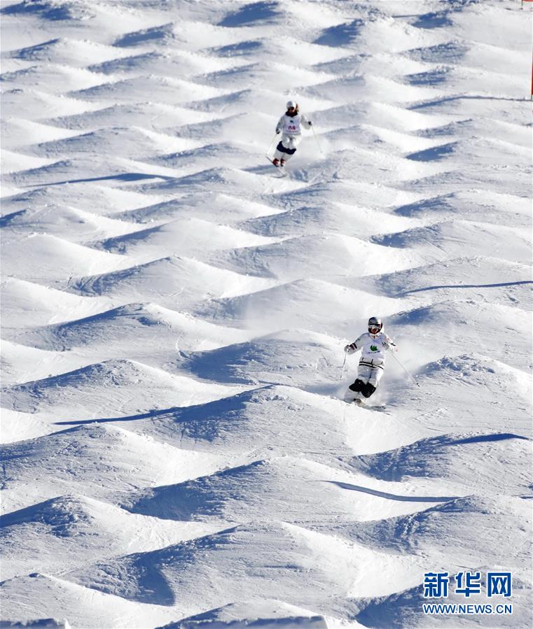 这是运动员在张家口市崇礼区太舞滑雪场参加自由式滑雪雪上技巧比赛(2018年12月14日摄)。新华社记者杨世尧摄