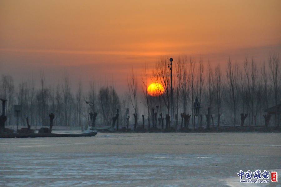 1月16日清晨,白洋淀上朝阳冉冉升起。中国雄安官网发 马晓 摄