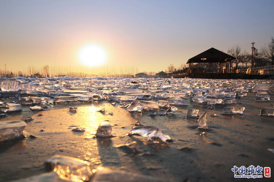 1月16日清晨,朝阳洒在白洋淀冰面上分外耀眼。中国雄安官网发 马晓 摄