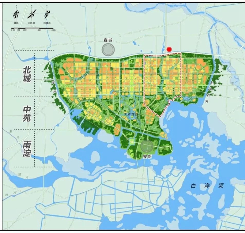 △这是雄安新区建设的起步区,规划建设用地100平方公里。上方红点标注的位置就是习近平这次去看的市民服务中心。(图片来源于《河北雄安新区规划纲要》)