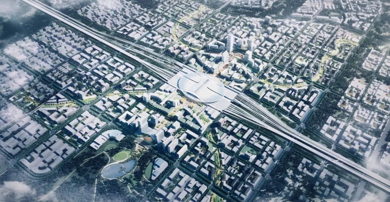 △雄安高铁站枢纽片区效果图(央视记者拍摄)