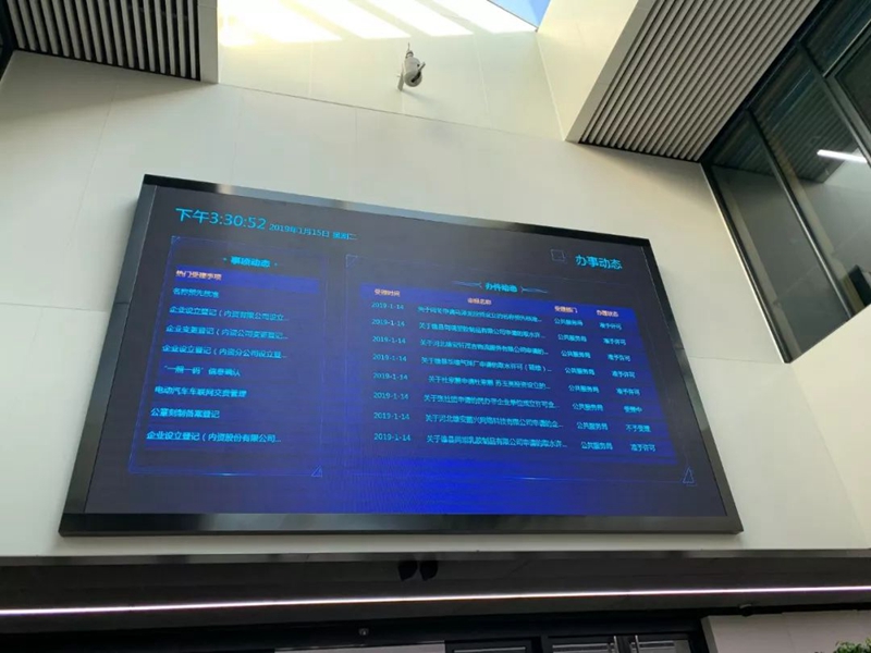 △当天的业务办理状态都通过这块屏幕实时显示出来。(央视记者卢心雨拍摄)
