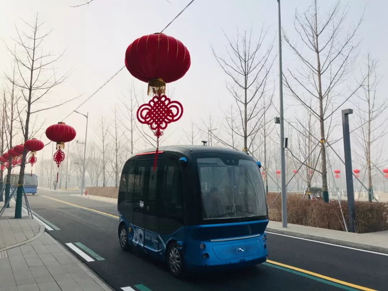 △一辆小型无人驾驶智能公交车在市民服务中心行驶。(央视记者拍摄)
