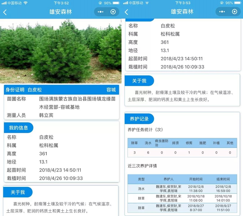 在雄安,每一棵树都是有身份的。二维码就是它们的身份证。通过运用大数据、区块链、云计算等高科技建立智能平台,可追溯全生命周期管理。