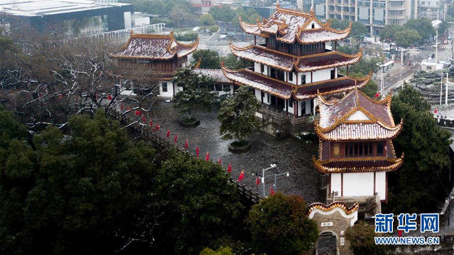 当日,湖南长沙市迎来一场降雪,古城楼天心阁在白雪的覆盖下显得静谧雅致。