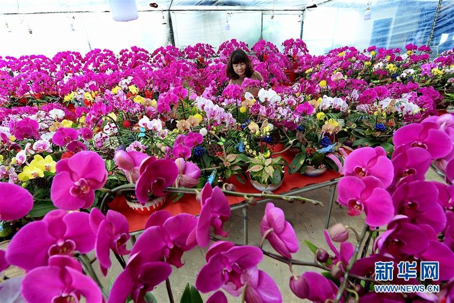1月17日,河北省遵化市兴旺寨乡何家峪村农民在大棚内管护花卉。春节临近,各地花卉种植大棚、花卉销售市场内一片姹紫嫣红,洋溢着浓浓的年味。新华社发(刘满仓 摄)