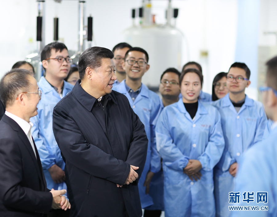 1月16日至18日,中共中央总书记、国家主席、中央军委主席习近平在京津冀考察,主持召开京津冀协同发展座谈会并发表重要讲话。这是1月17日上午,习近平在天津南开大学元素有机化学国家重点实验室同师生亲切交流。新华社记者 丁林 摄