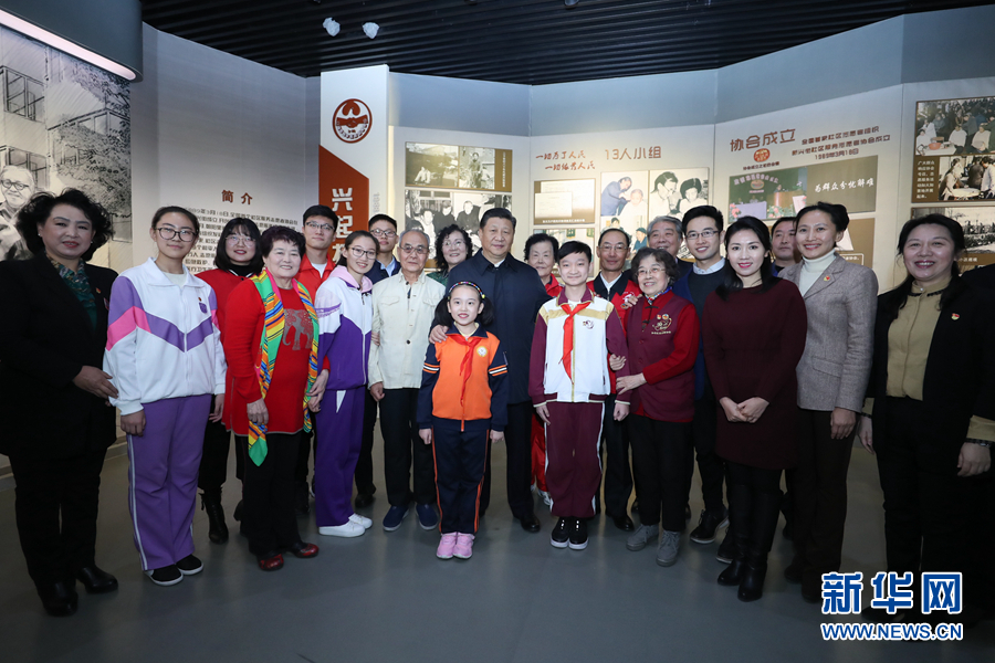 1月16日至18日,中共中央总书记、国家主席、中央军委主席习近平在京津冀考察,主持召开京津冀协同发展座谈会并发表重要讲话。这是1月17日上午,习近平在天津和平区新兴街朝阳里社区志愿服务展馆同志愿者们亲切合影。新华社记者 鞠鹏 摄