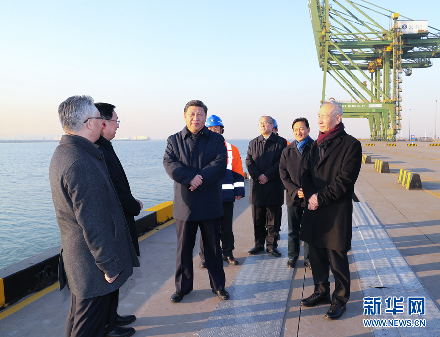 1月16日至18日,中共中央总书记、国家主席、中央军委主席习近平在京津冀考察,主持召开京津冀协同发展座谈会并发表重要讲话。这是1月17日下午,习近平在天津港码头考察。新华社记者 谢环驰 摄