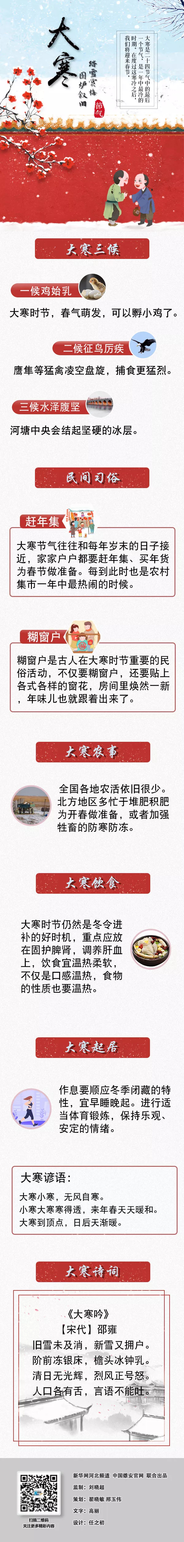 大寒是二十四节气中的最后一个节气,是一年中最冷的时期。在度过这寒冷之后,我们将迎来春节。