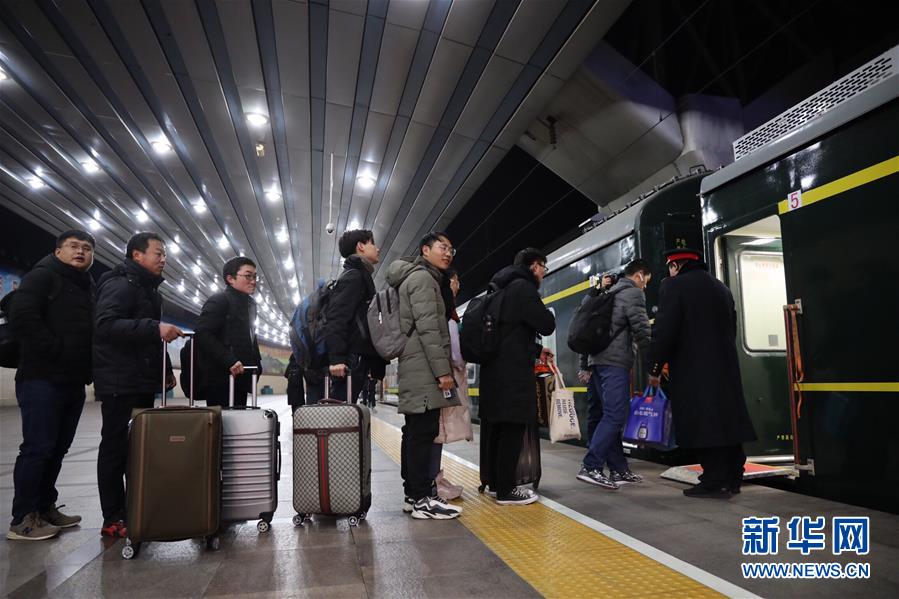 1月21日凌晨,乘坐北京至南通的K4051次列车的旅客在北京站检票上车。当日,2019年春运正式启动。新华社记者 邢广利 摄