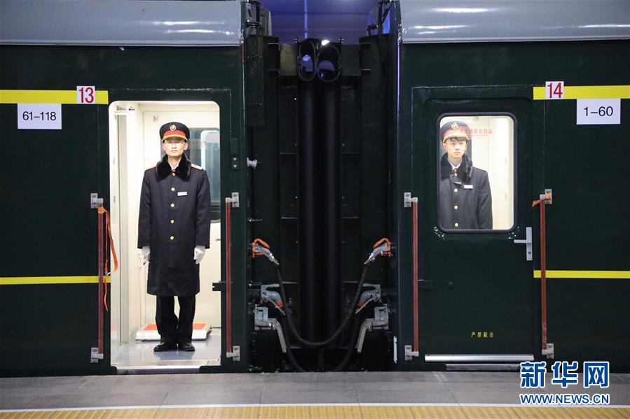 1月21日凌晨,在北京站,工作人员在即将发车的北京至南通的K4051次列车上。当日,2019年春运正式启动。新华社记者 邢广利 摄