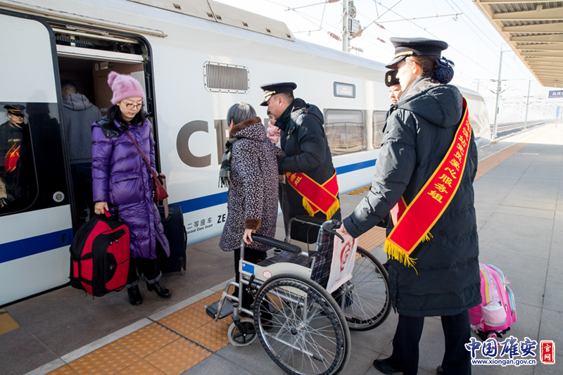 春运首日,车站工作人员为旅客贴心服务。中国雄安官网记者马梦迪 摄