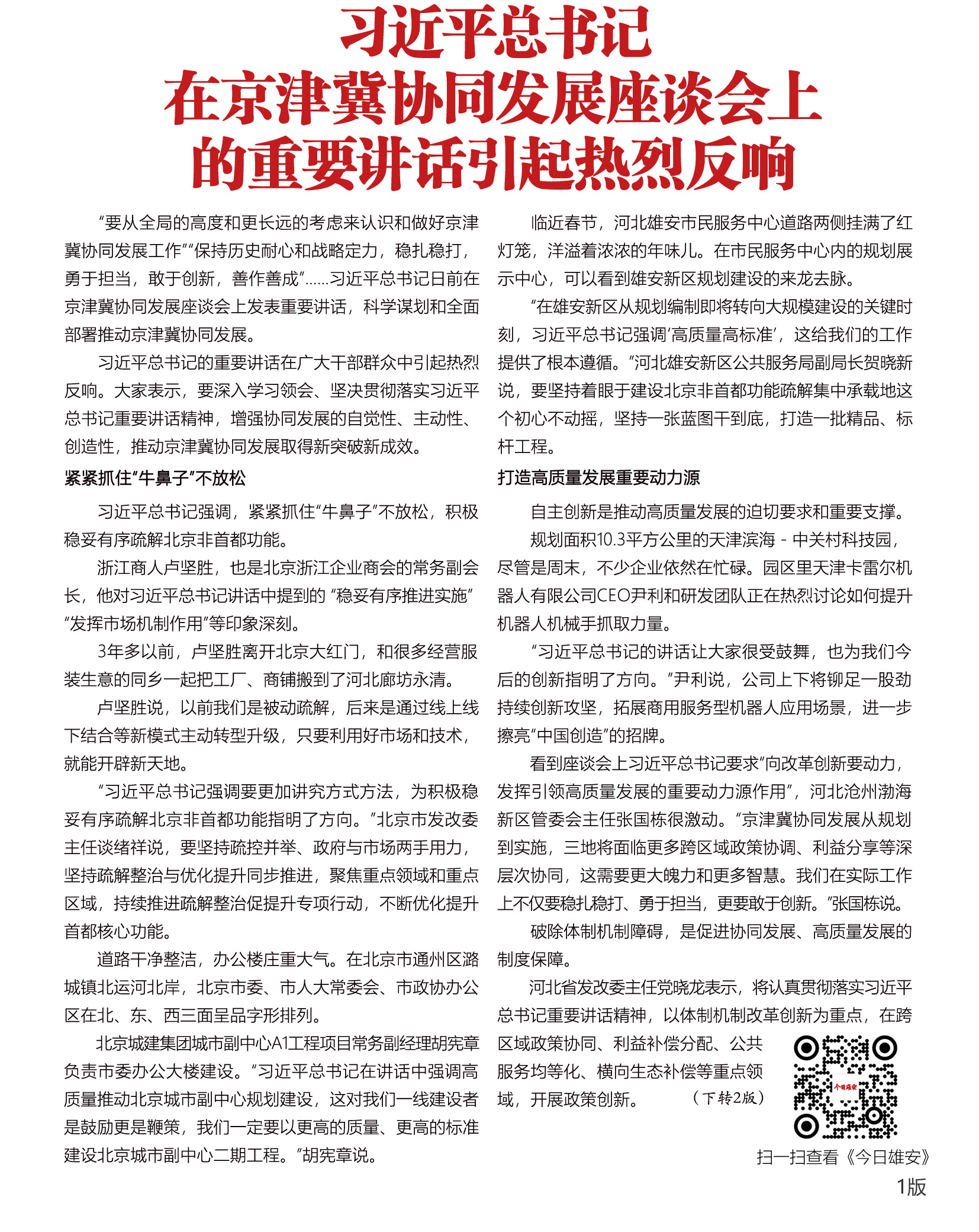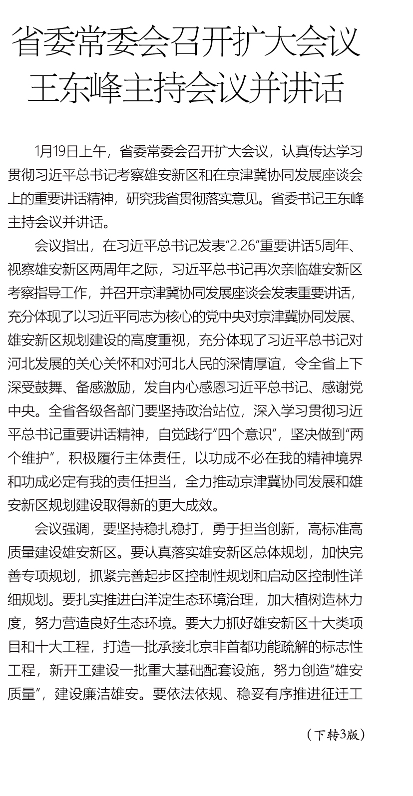 隆冬时节,华北大地涌动着改革发展的热潮。从雄安新区到天津再到北京城市副中心,习近平总书记近日在京津冀考察,主持召开京津冀协同发展座谈会并发表重要讲话。