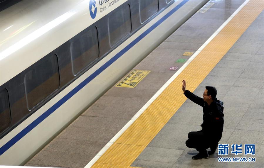 1月21日,在石家庄火车站,一名男子与家人挥手告别。当日,为期40天的2019年春运正式启动。新华社发(梁子栋 摄)