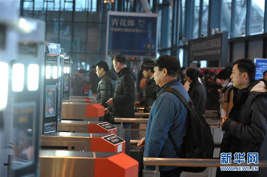 1月21日,旅客在武汉火车站“刷脸”进站乘车。当日,为期40天的2019年春运正式启动。新华社发(彭琦 摄)