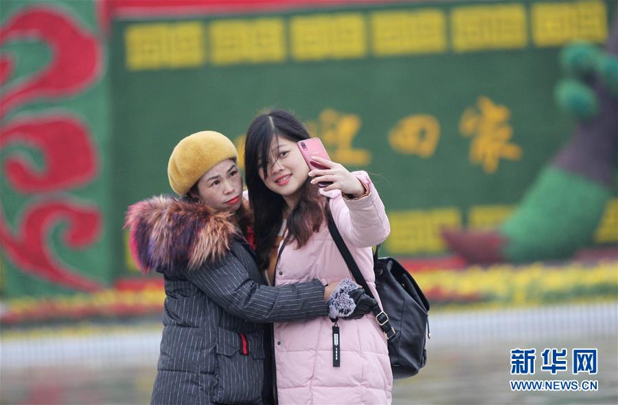1月21日,旅客在湖南省永州市道州火车站站前广场上拍照。 当日,为期40天的2019年春运正式启动。新华社发(何红福 摄)