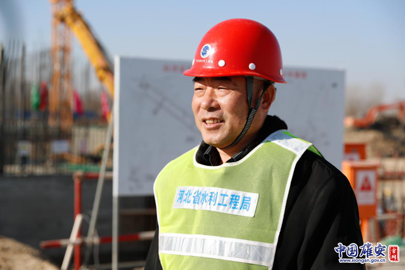 施工项目部经理王文田在向记者介绍工程情况。中国雄安官网记者王京卓 摄
