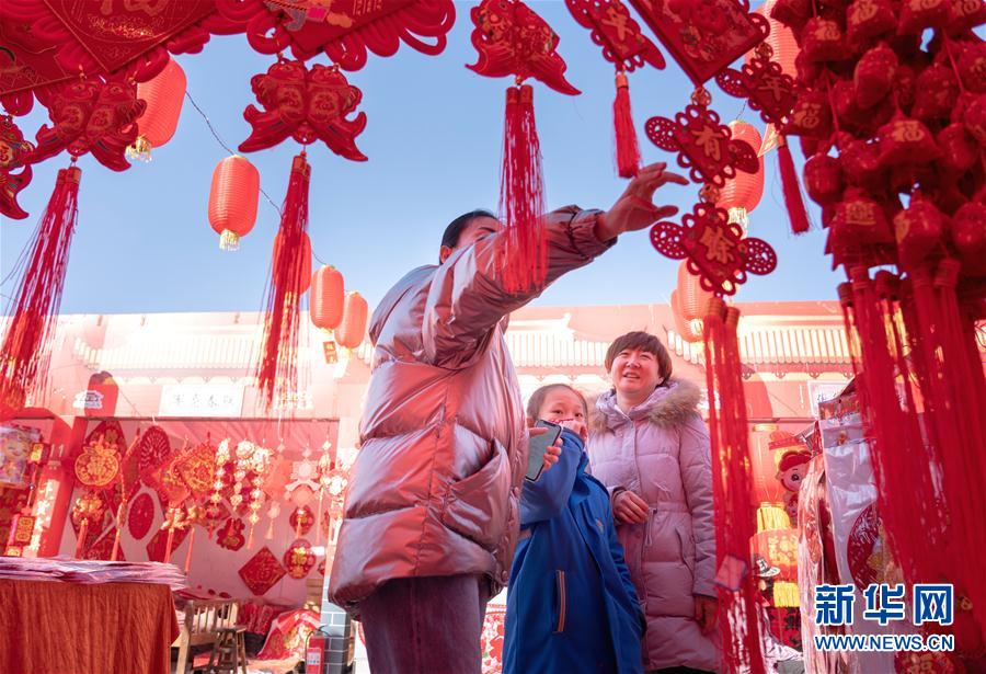 1月22日,人们在年货大集上选购年货。新春佳节将近,河北省正定县正定镇的年货大集上年味渐浓。新华社发(武志伟 摄)
