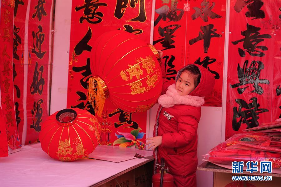 1月22日,一名小女孩在年货大集上手提红灯笼。新春佳节将近,河北省正定县正定镇的年货大集上年味渐浓。新华社发(武志伟 摄)