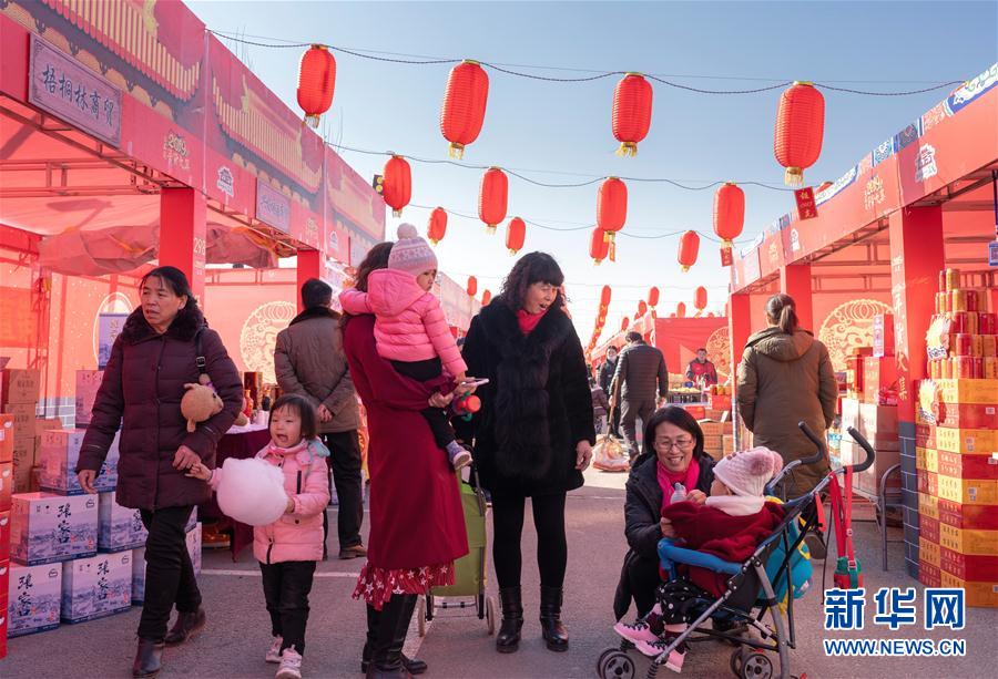 1月22日,人们在年货大集上选购年货。新春佳节将近,河北省正定县正定镇的年货大集上年味渐浓。新华社发(武志伟 摄)