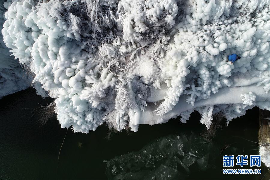 这是1月20日拍摄的河北省沙河市大安山冰瀑(无人机拍摄)。近日,河北省沙河市大安山出现冰瀑景观,吸引了众多游客前来观赏游玩。新华社记者 牟宇 摄