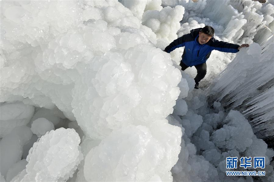1月20日,游客在河北省沙河市大安山冰瀑景观内游玩。近日,河北省沙河市大安山出现冰瀑景观,吸引了众多游客前来观赏游玩。新华社记者 牟宇 摄