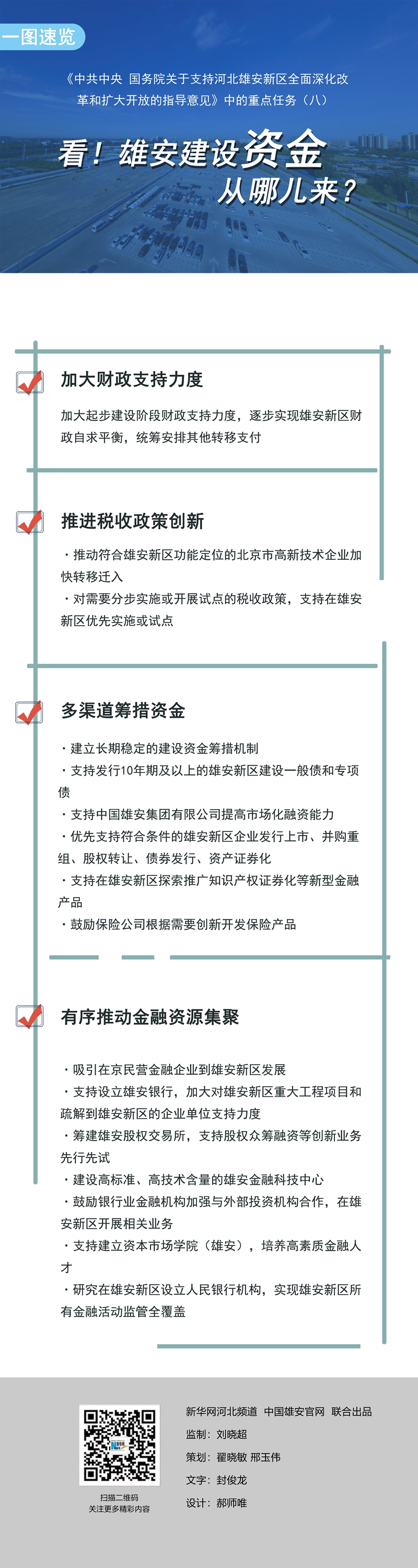 一图读懂《中共中央 国务院关于支持河北雄安新区全面深化改革和扩大开放的指导意见》。