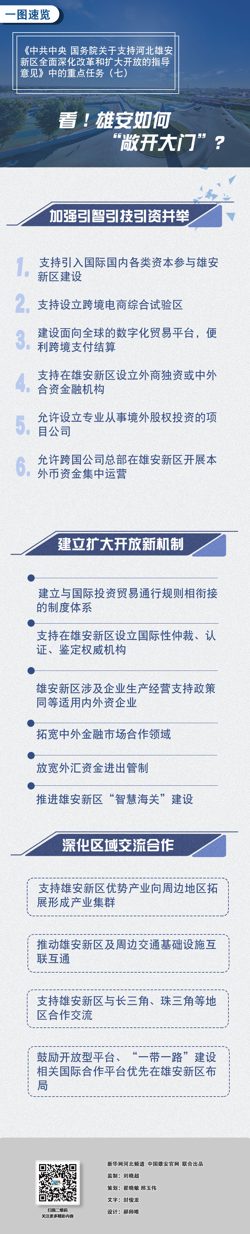 一图读懂《中共中央 国务院关于支持河北雄安新区全面深化改革和扩大开放的指导意见》。