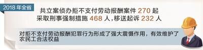 据了解,去年全省共立案侦办拒不支付劳动报酬案件270起,采取刑事强制措施468人,移送起诉232人,对拒不支付劳动报酬犯罪行为形成了强大震慑作用,有效维护了农民工合法权益。