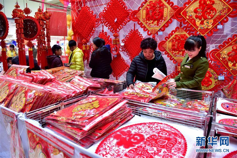 1月25日,市民在河北石家庄新乐市一家超市选购新春饰品。随着春节临近,春联、福字和红灯笼扮靓了大街小巷。新华社发(贾敏杰 摄)