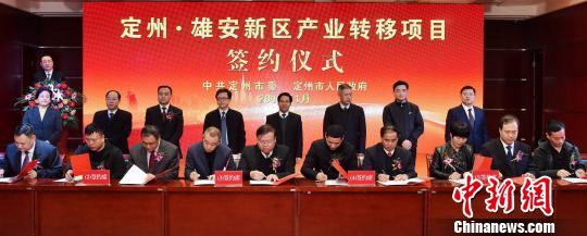 25日晚,河北定州·雄安新区产业转移项目签约仪式在定州国际酒店举行,44家雄安新区转移企业落户定州。