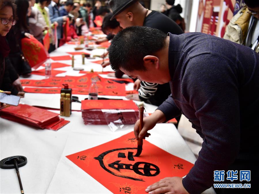 当日,青海西宁海湖路社区举行迎新春送春联进社区活动,青海省书法家协会的近20位书法家为市民书写春联,迎接即将到来的春节。新华社发(张龙 摄)