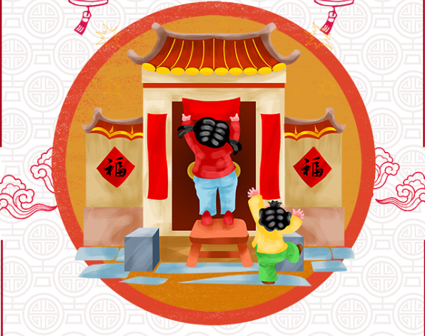 打糕蒸馍贴花,所谓贴花花,就是张贴年画、春联和窗花。