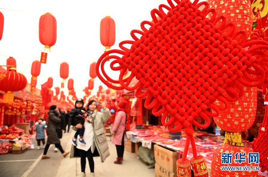 1月27日,人们在石家庄市正定县年货大集上游玩购物。春节临近,各地的集市、市场年味浓浓,处处洋溢着喜迎新春佳节的气氛。新华社发(陈其保 摄)