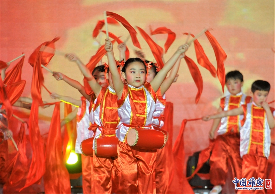 “中国梦·雄安情”雄安新区少儿春节联欢晚会录制现场,小朋友们正在表演节目《开门红》。朱伟琳 摄