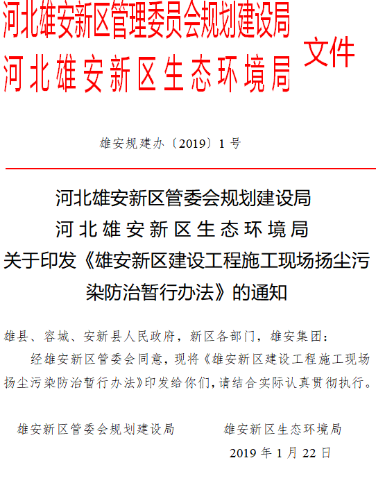 近日,雄安新区规划建设局、生态环境局联合印发《雄安新区建设工程施工现场扬尘污染防治暂行办法》,实施最严厉的施工现场扬尘防治措施,严重违规的参加单位将清出雄安新区建设市场。