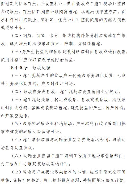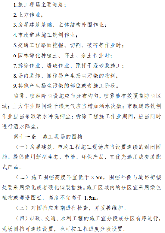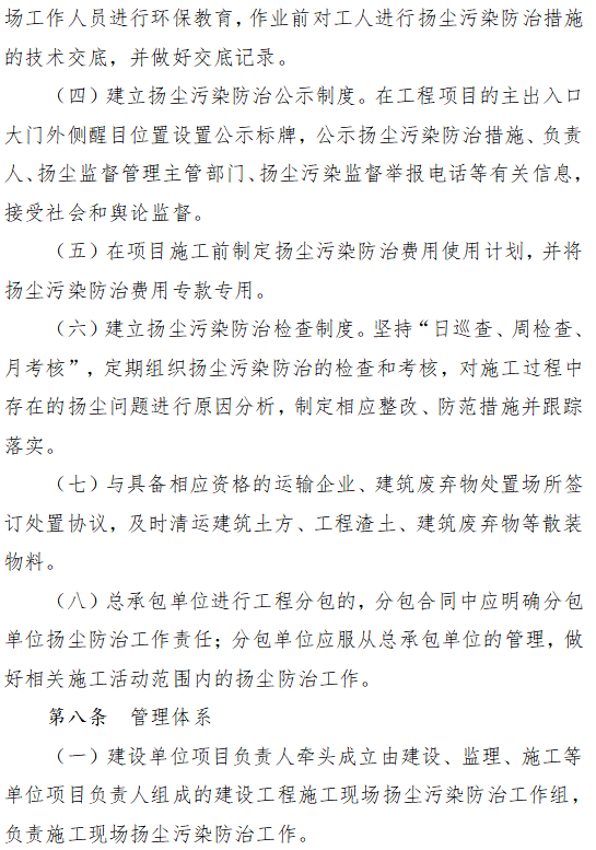 该办法涵盖了建筑工程、装饰装修工程、市政工程、水利工程、交通工程、园林绿化工程各专业;管理范围包括施工现场的围挡、硬化绿化、施工现场车辆冲洗设施、物料码放、垃圾处理、渣土运输的全过程;明确了全链条的管理责任,建设单位负总责,监理单位负监督责任,施工单位为责任主体的管理体系。