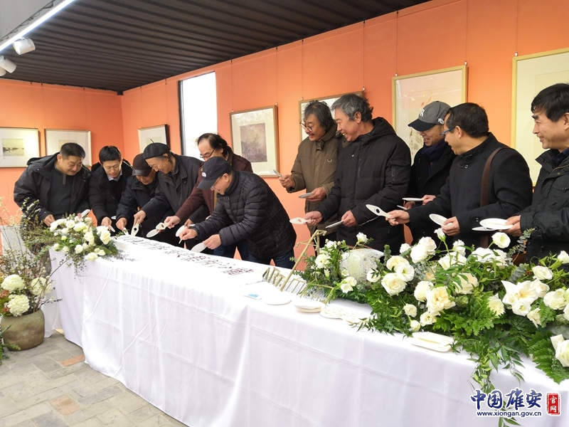 座谈会前,雄安新区宣传中心相关负责人、河北省美术研究所、雄安新区三县本土艺术家共同切开“2019迎新春·雄安书画艺术沙龙”蛋糕,象征分享艺术成果,为本次活动揭幕。随后,与会者共同参观书画展览,并就新区文化艺术发展相关话题开展座谈。